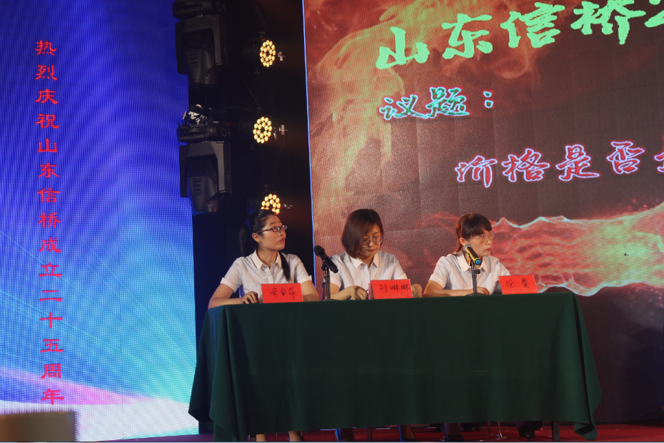 此次慶典晚宴參加人員除了信橋全體員工之外,還有部分老領導和老朋友,大家共同分享了信橋二十五周年的喜悅與精彩。慶典開始之前,演員們辛勤排練,燈光師、音響師共同配合,所有人為了晚會都在努力。下午5點28分,晚會正式開始,全體員工與領導集體合影,各個辦公室全體員工也各自合影。