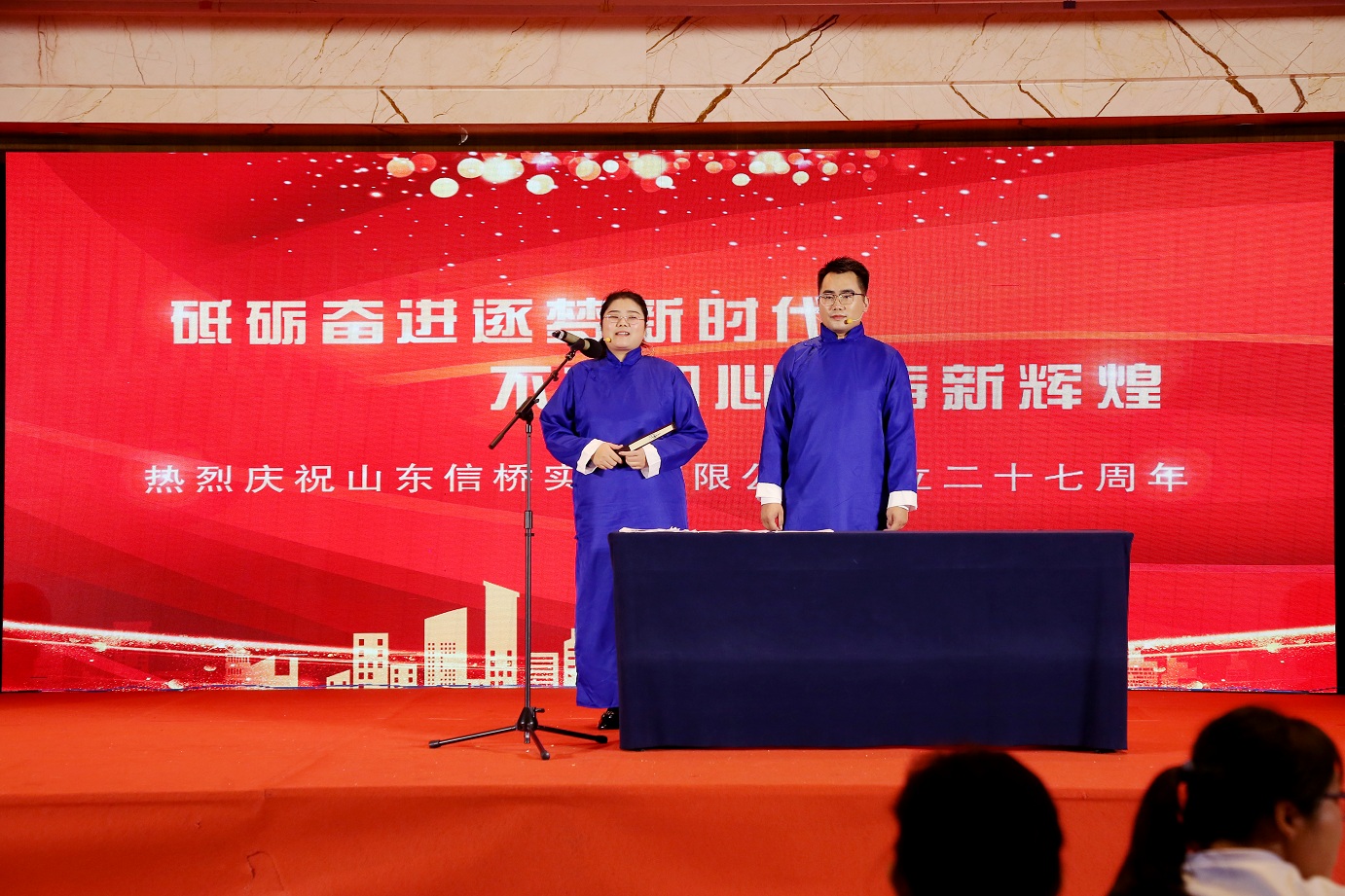 歲月如歌,風(fēng)霜如畫(huà),二十七年彈指一揮間,山東信橋?qū)崢I(yè)有限公司(以下簡(jiǎn)稱(chēng)山東信橋)迎來(lái)了二十七周年的生日。二十七年來(lái),信橋人在激烈的市場(chǎng)競(jìng)爭(zhēng)中奮力拼搏、砥礪前行,接受了市場(chǎng)風(fēng)風(fēng)雨雨的洗禮,取得了累累碩果。為了慶祝這一特殊的日子,2021年8月8日,以“拼搏進(jìn)取,開(kāi)創(chuàng)新時(shí)代”為主題的山東信橋二十七周年慶典活動(dòng)在寶盛大酒店舉行。
