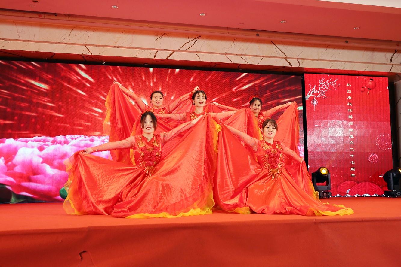 此次慶典晚宴參加人員除了信橋全體員工之外,還有部分老領(lǐng)導(dǎo)和老朋友,大家共同分享了信橋二十七周年的喜悅與精彩。八號(hào)上午,慶典開(kāi)始之前,演員們辛勤排練,燈光師、音響師共同配合,所有人為了晚會(huì)都在努力。下午4點(diǎn)58分,晚會(huì)正式開(kāi)始,全體員工與領(lǐng)導(dǎo)集體合影,信橋隊(duì)伍不斷在擴(kuò)大。今年的晚會(huì)添加新的互動(dòng)方式,采用了直播和紅包雨的新形式,是信橋周年慶典的一次新的嘗試。